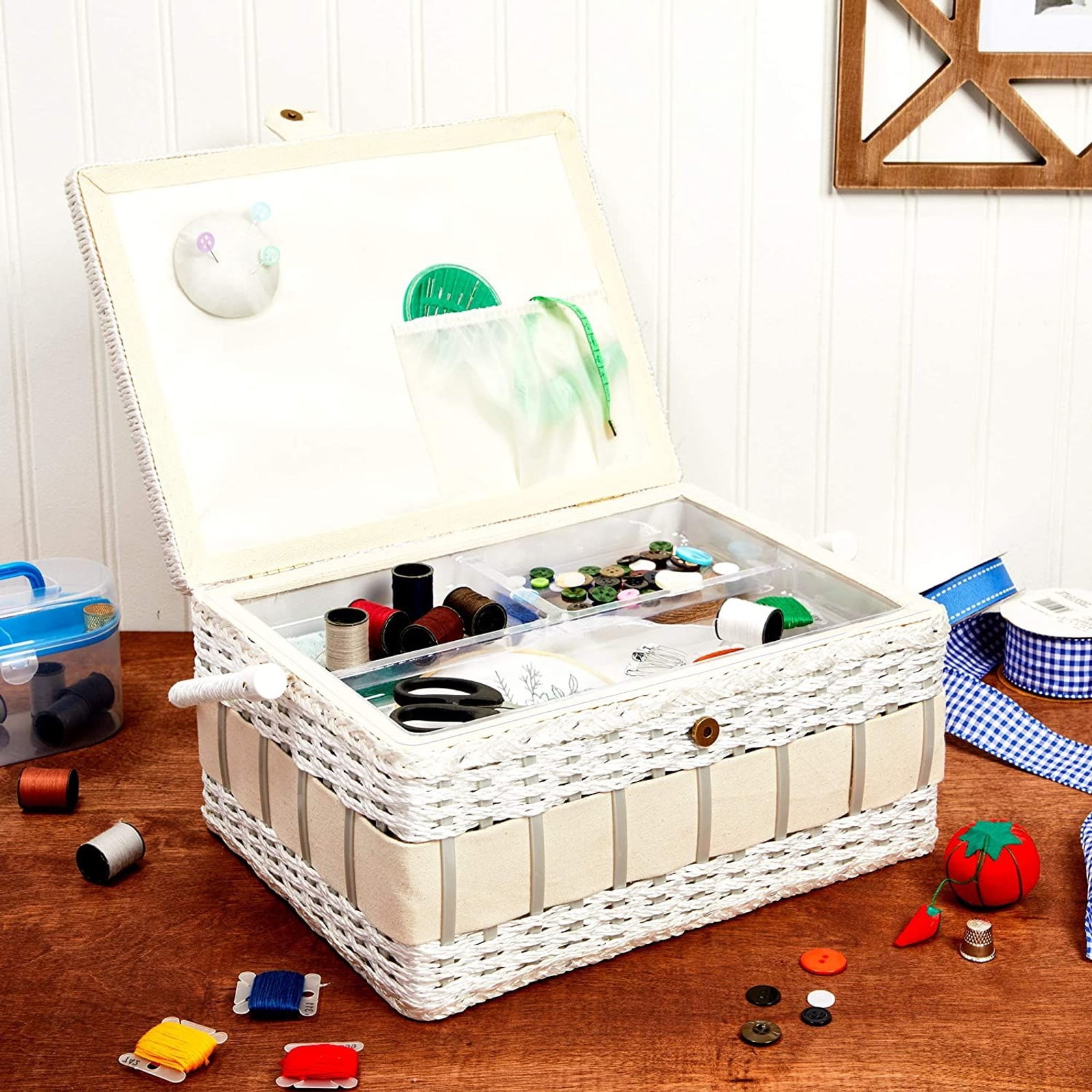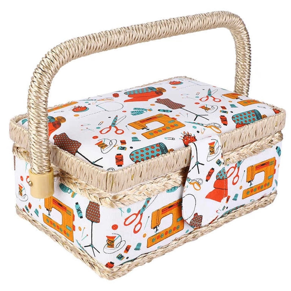 Vintage Sewing Basket Organizer Box Kit With Supplies And Notions Accessories 13 X 9 5 X 6 In Walmart Com